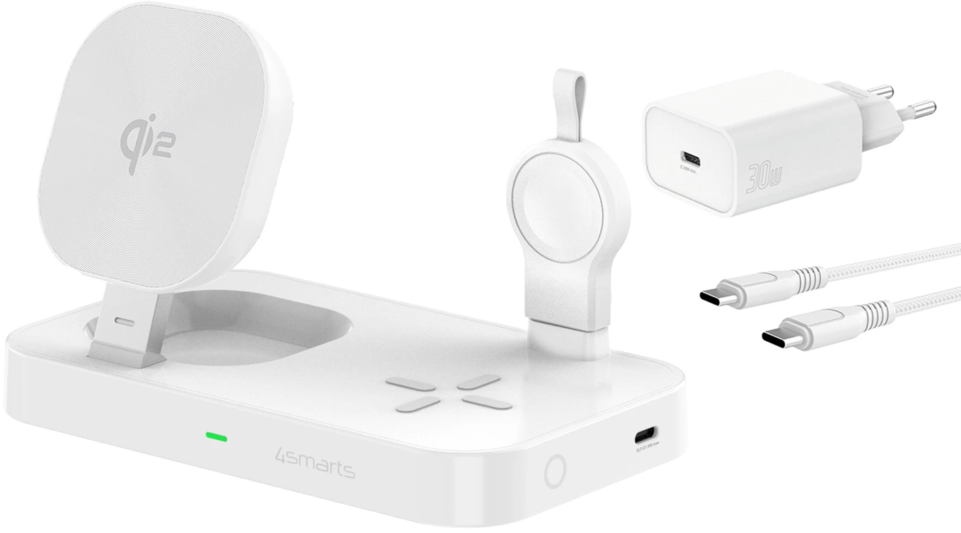 4Smarts Qi2 Ladestation Trident mit Charger für Apple Watch Weiß