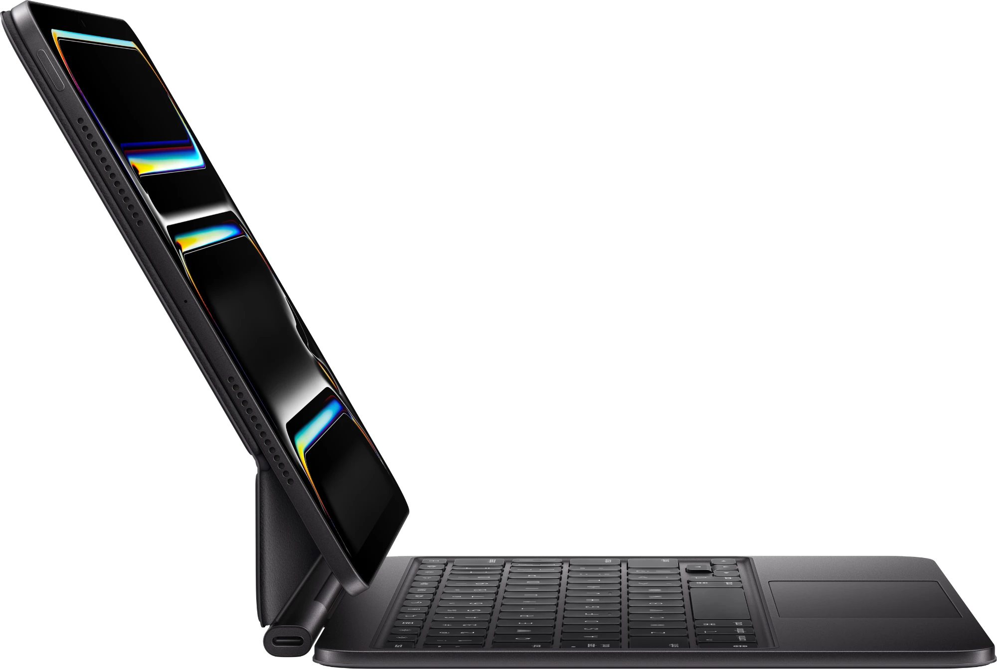 Das Magic Keyboard ist der perfekte Begleiter für das iPad Air. Es hat ein schlankes, mobiles Design und sorgt für ein angenehmes Tippen. Und du hast ein Trackpad, um ganz präzise zu arbeiten. Die Tastatur hat eine Reihe mit 14 Funktions­tasten, einen USB‑C Anschluss zum Pass‑Through Laden sowie einen Schutz für die Vorder‑ und Rückseite deines iPad. Das frei­schwebende Design lässt sich stufenlos an mehrere Betrachtungs­winkel anpassen und ein großes Trackpad aus Glas gibt dir neue Möglichkeiten, mit iPadOS zu arbeiten.