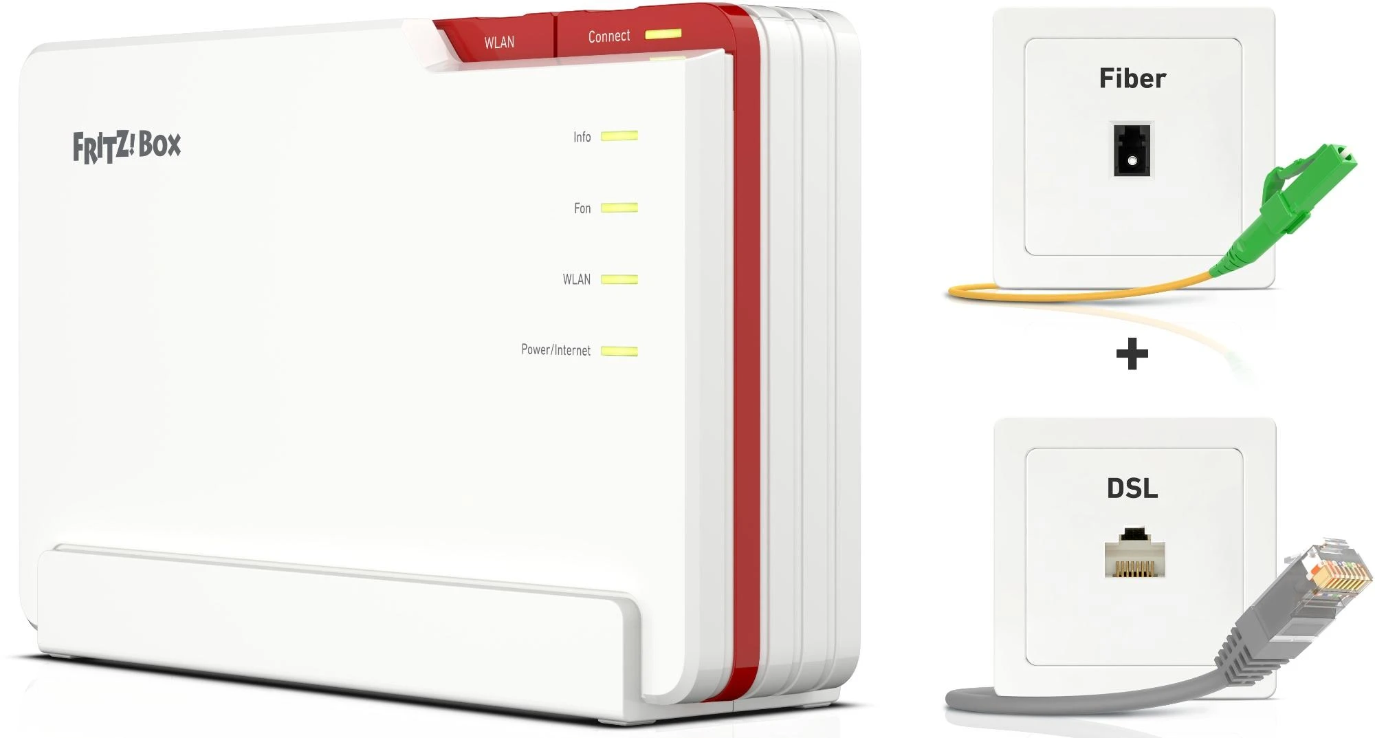 Die FRITZ!Box 5690 unterstützt die in Europa gebräuchlichen Glasfaser-Standards GPON und AON. Für die Anbindung an das jeweilige Netz wird die FRITZ!Box 5690 mit dem mitgelieferten Glasfaserkabel direkt an dem Glasfaseranschluss verbunden. Einfach einstecken und die Einrichtung erfolgt schnell und komfortabel über die Benutzeroberfläche. Zudem lässt sich die FRITZ!Box auch flexibel an ein Glasfasermodem (ONT) anschließen.