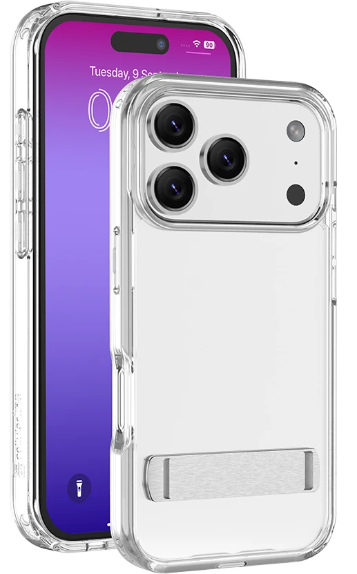 Clear Stand ist die transparente Schutzhülle mit integriertem Standfuß – ideal für freihändiges Telefonieren, Streaming oder Arbeiten. Sie besteht aus einem harten Rücken und stoßdämpfendem Gummirahmen und schützt zuverlässig vor Stößen und Stürzen. Erhöhte Kanten schützen Bildschirm und Kamera. Die antibakterielle Oberfläche und das Anti-Vergilbungs-Material sorgen für dauerhafte Hygiene und Klarheit.
