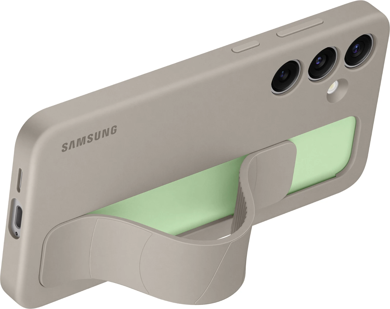 Mit dem neuen Standing Grip Case liegt dein Galaxy S24 | S24+ | S24 Ultra komfortabel und durch das Band zudem sicher in der Hand. Willst du bequem Videos oder Fotos betrachten, kannst du das Band herunterdrücken bis es fixiert ist und so dein GalaxySmartphone Aufstellen und die Inhalte unbeschwert genießen. Das Material überzeugt mit einer weichen Textur, die sich großartig anfühlt. Das Standing Grip Case sieht nicht nur stylisch aus, sondern bietet auch Schutz vor Kratzern und bei Stößen – sowohl für den Rahmen als auch die Rückseite