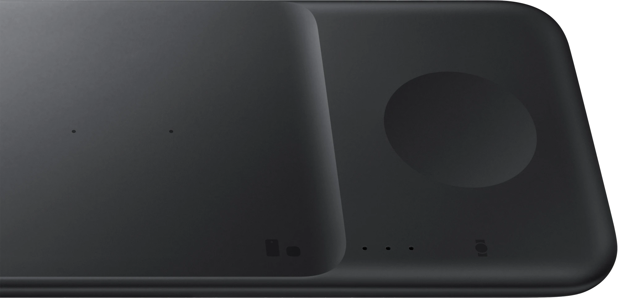 Mit dem fest zugeordneten Platz für die Galaxy Watch und einem eingebauten Magneten, wird deine Smartwatch super in Position gebracht, wenn du sie hinlegst. Und auf der linken Seite kannst du dein Smartphone und deine Galaxy Buds aufladen oder aber auch dein Smartphone und das deines Freundes.
