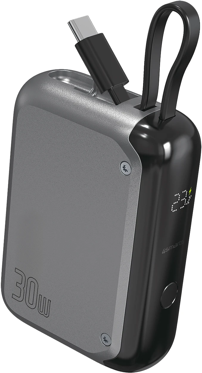 4Smarts Powerbank Pocket mit integriertem USB-C Kabel 10000mAh 30W Spacegrau